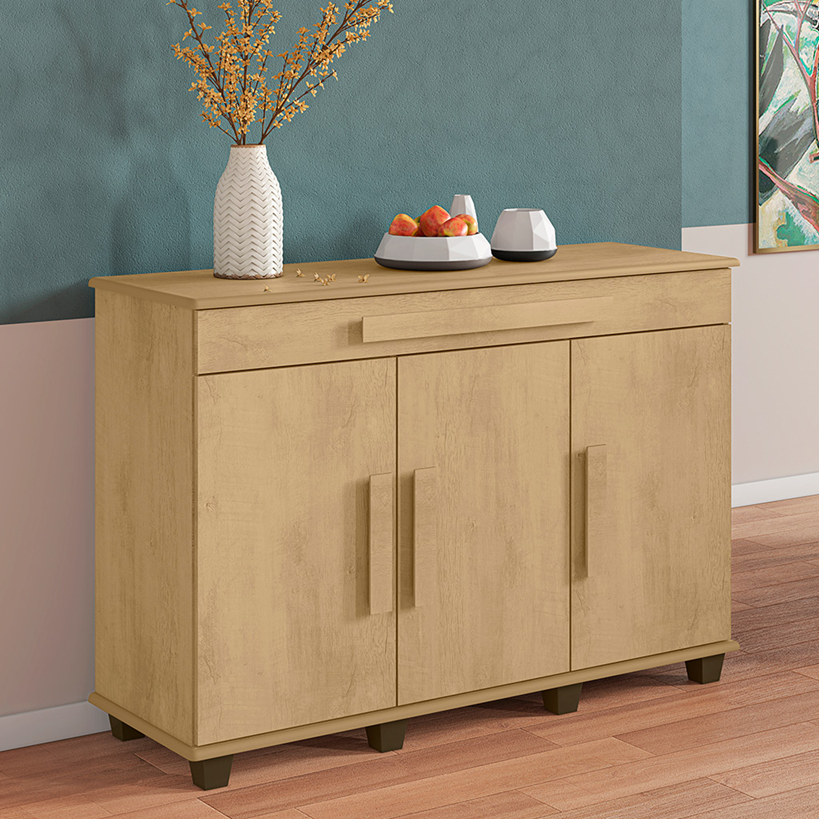 Perfeito para sua sala de estar, jantar ou cozinha, o Balcão 3 pts Rubi é a escolha ideal para quem busca um móvel versátil, resistente e sofisticado.