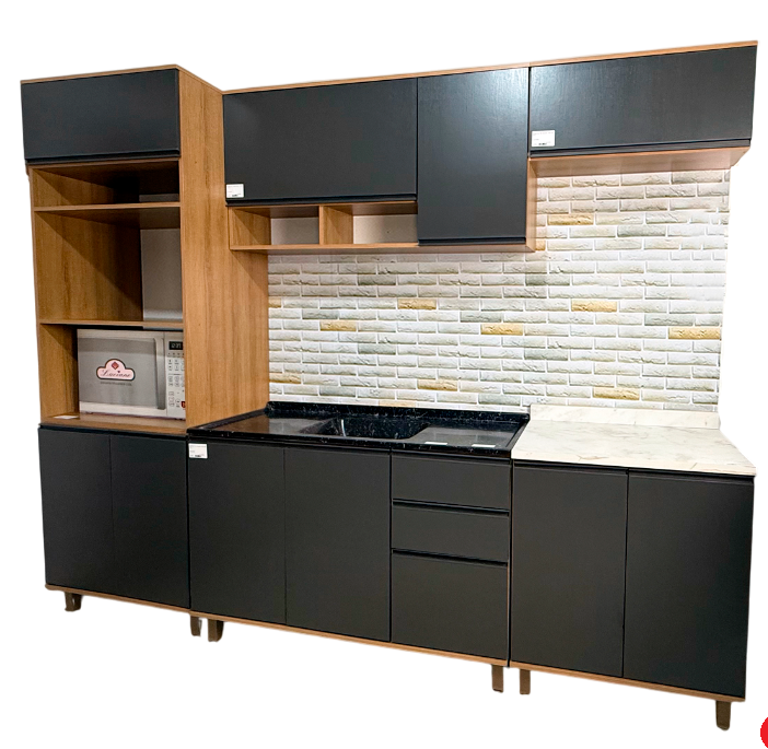 A cozinha é uma das partes mais frequentadas de uma casa, né? Principalmente pra quem curte cozinhar e receber os amigos. Por isso, é muito importante ter um espaço prático e onde seja possível guardar tudo sem bagunça. A cozinha completa DIA220901/218, linha Diana da Luciane é o produto que estava faltando para completar sua cozinha. Com 10 Portas, 2 Gavetas, 6 Prateleiras e 3 nichos é elegante e ideal para quem deseja um produto de alta qualidade, com designer moderno que traz sofisticação ao ambiente. Em sua composição, ela possui Paneleiro, Balcão e Tampo. Uma combinação compacta feita em MDP com revestimento e acabamento PF para melhor proteção. Utiliza corrediças telescópicas, dobradiças metálicas e pistão à gás para abertura com maior facilidade. Suas cores Avelã e Fumê são neutras e combinam com qualquer ambiente levando beleza e modernidade.