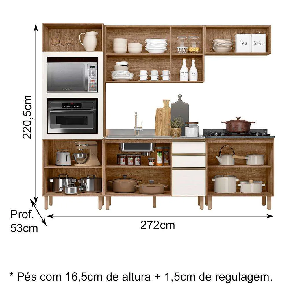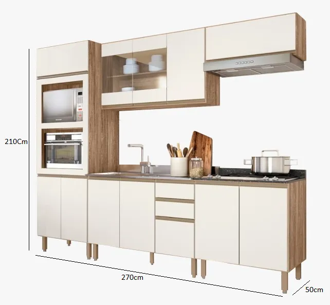 A Cozinha Kali é ideal para você deseja manter a cozinha bem organizada, funcional e não abre mão da beleza. Desenvolvida em MDP, as gavetas têm corrediças telescópicas, armários com ótima divisão interna além de contar com espaço para o seu forno e micro-ondas.