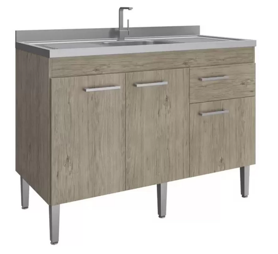 Balcão Gabinete Para Cozinha Sem Pia e Sem Tampo 3 Portas 1 Gaveta Marrom Carvalho Canela. O Balcão de Pia Carvalho Canela da Móveis Arte Cas possui um excelente espaço interno e se destaca pela utilidade, modernidade e beleza com a qualidade superior das demais. O produto possui às corrediças telescópicas e os pés com ajustes niveladores. O PRODUTO NÃO ACOMPANHA TAMPO OU QUALQUER TIPO DE PIA.
